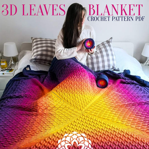 3D LEAVES BLANKET PDF CROCHET PATTERN
