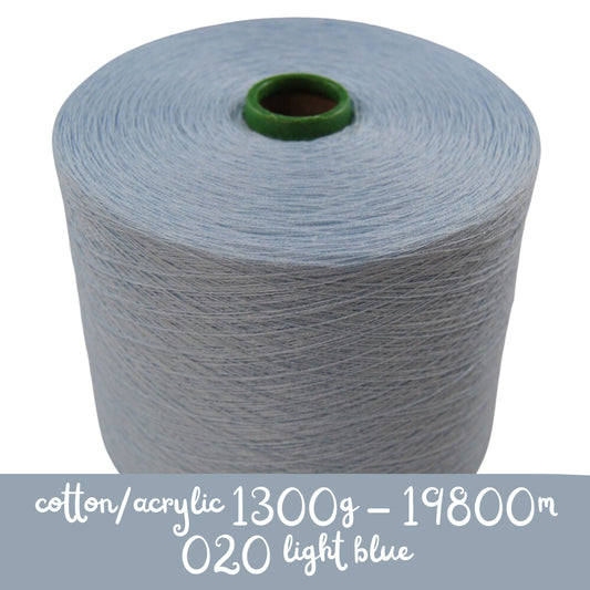 MACHINE KNITTING CONE YARN 50/50 COTTON ACRYLIC 1300 g 020 LIGHT BLUE